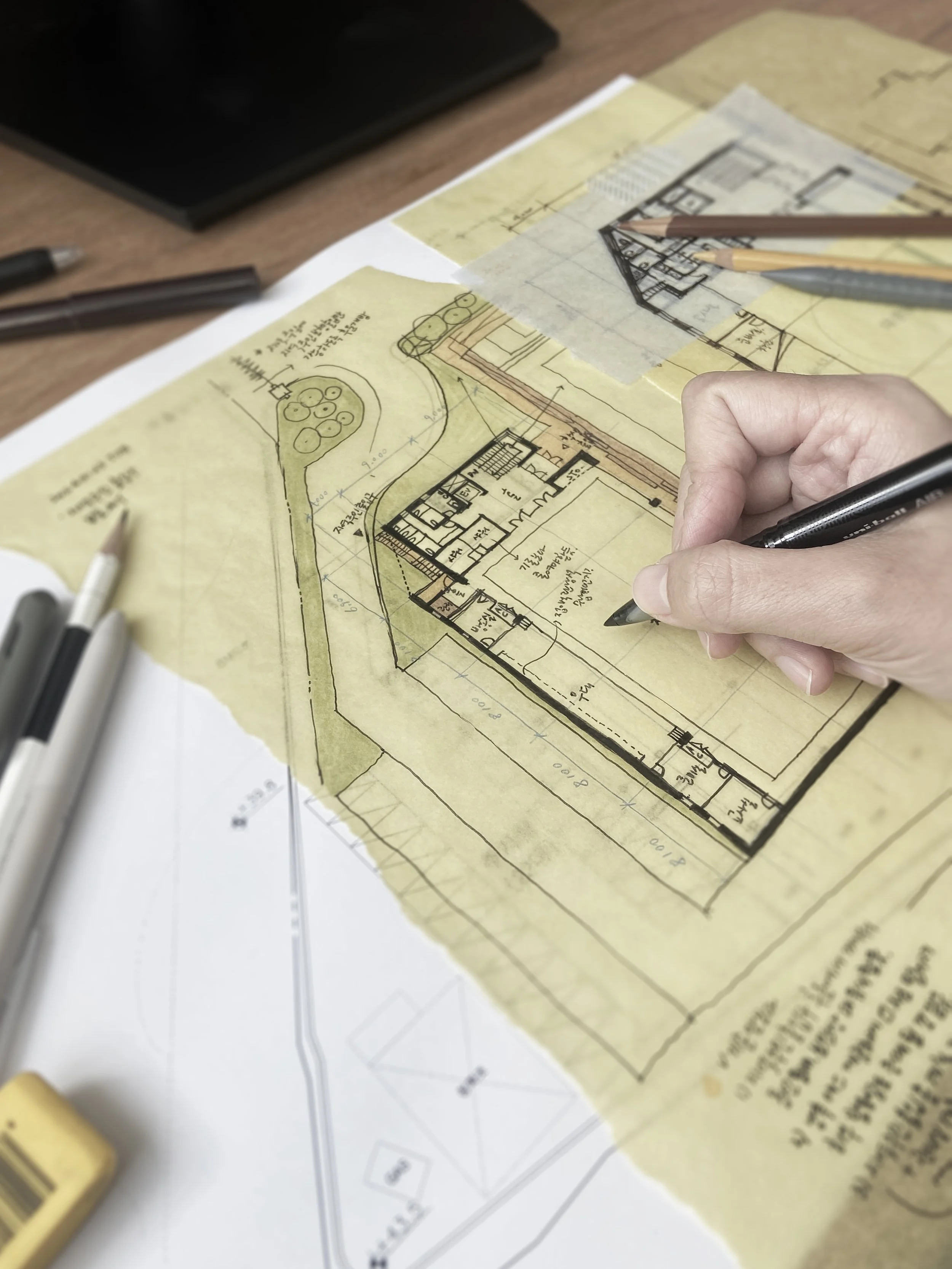 TEXOD is a compound word derived from the Latin "TEXO," meaning to build, weave, and incorporate into a story, combined with "METHOD," signifying a manner or system for achieving something. TEXOD Architects researches and practices methods of making something, establishing relationships with surroundings, and conveying narratives.
