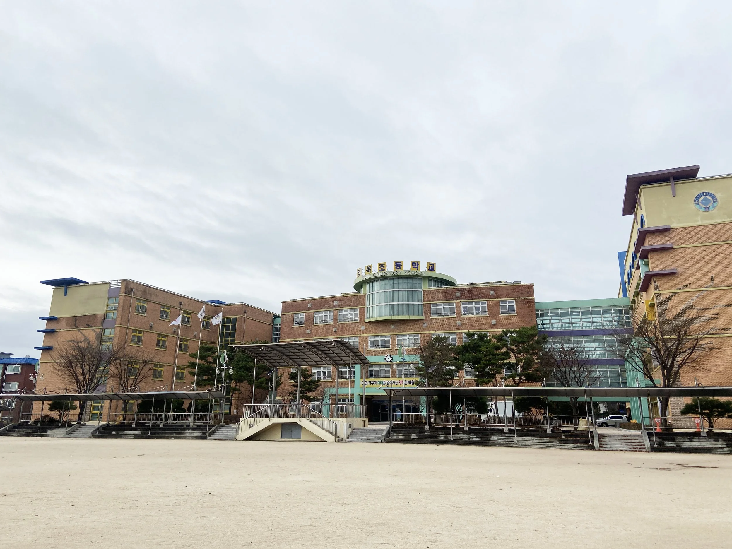 외부공간 활성화 및 안전한 보행환경 확보를 위해 우선 기존에 혼재된 보차동선을 정리했다. 급식 하역과 교사동 주차장 근처에 교직원 및 서비스 차량 전용 별도 출입구를 제안했고, 증축으로 인한 추가 주차장은 정문을 통하되 보행자 동선과 겹치지 않도록 계획했다. 보행자 동선의 경우 2층 실내 연결통로 뿐만 아니라 외부계단을 같이 계획해 야외공간에서의 접근성도 높였으며, 외부계단은 관람데크와 반대편 외부 사용자 출입계단까지 그대로 이어지는 교내의 입체적 산책로로 계획했다. 또한 체육관 외부를 감싸는 순환동선을 더 자연스럽게 하고자 외벽의 바깥 코너는 대부분 곡면으로 처리했다.