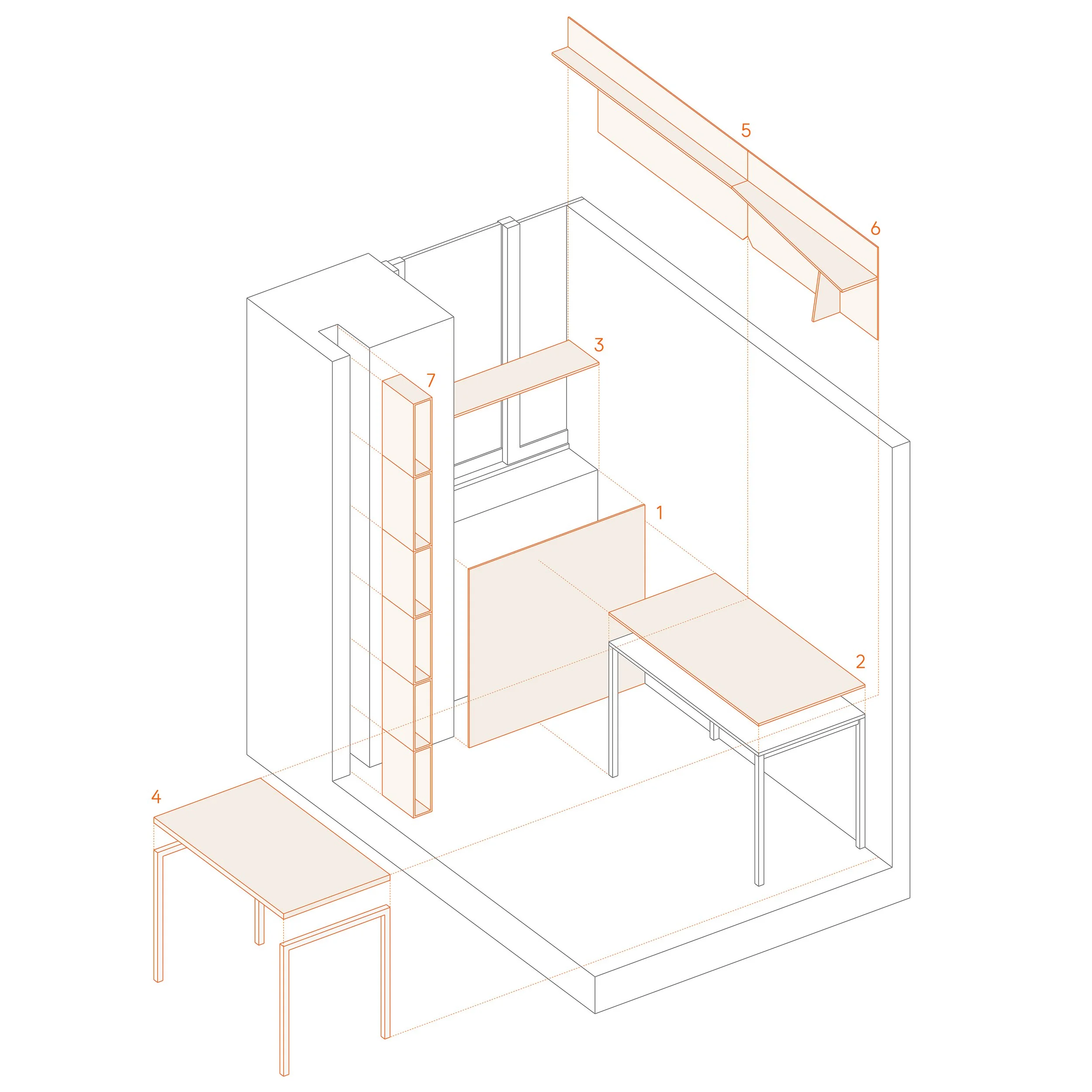 설치와 해체 과정이 최대한 쉽도록 가구와 마감은 한 사람이 쉽게 운반 가능한 크기로 나누고, 모든 부재는 기존 공간에 직접 고정하는 대신 약간의 마찰력과 중력의 도움만 받는 것을 큰 원칙으로 했다. 이 부재들은 추후 다른 곳에서 또 다른 방식으로 재사용 될 수 있다.